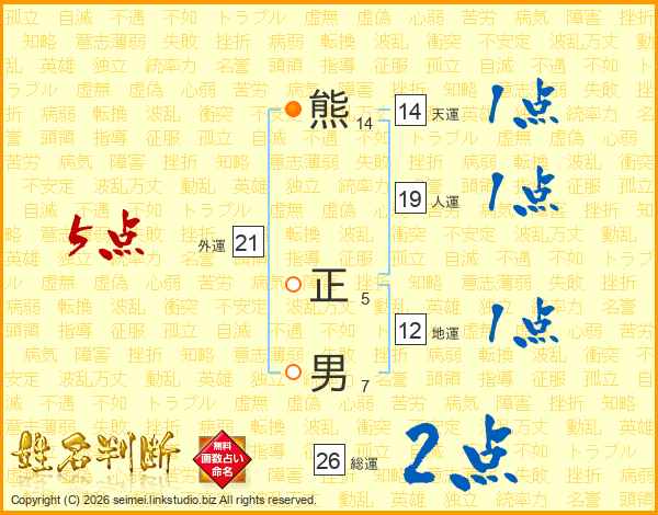 熊正男さんの総運は26画の2点!