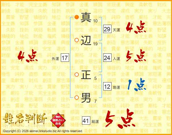 真辺正男さんの総運は41画の5点!