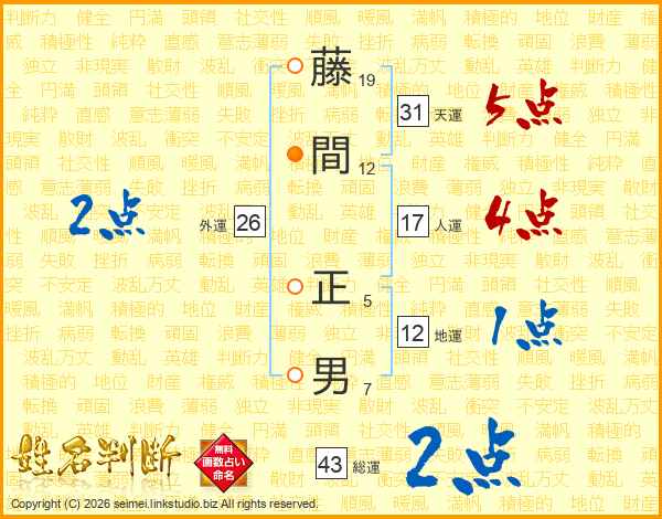 藤間正男さんの天運は31画の5点!