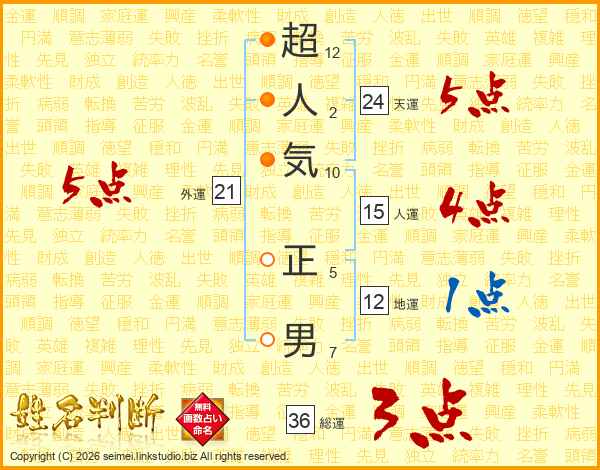 超人気正男さんの天運は24画の5点!