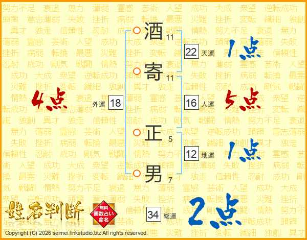 酒寄正男さんの外運は18画の4点!