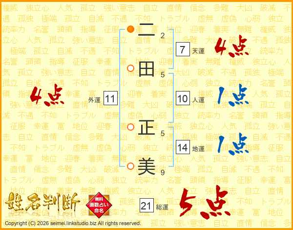 二田正美さんの総運は21画の5点!