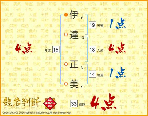 伊達正美さんの総運は33画の4点!