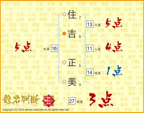 住(7画)吉(6画) 正(5画)美(9画)