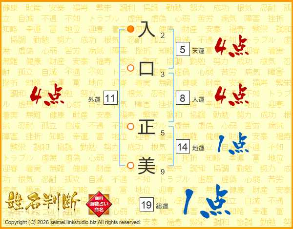 入口正美さんの地運は14画の1点!