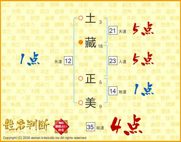 土藏正美さんの天運は21画の5点!