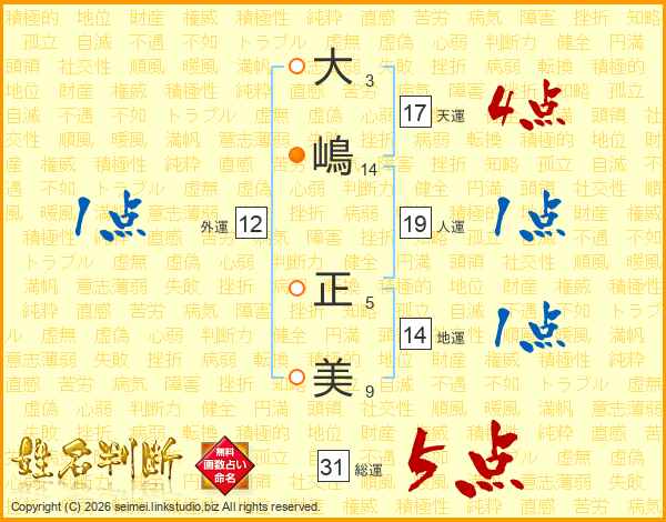 大嶋正美さんの総運は31画の5点!