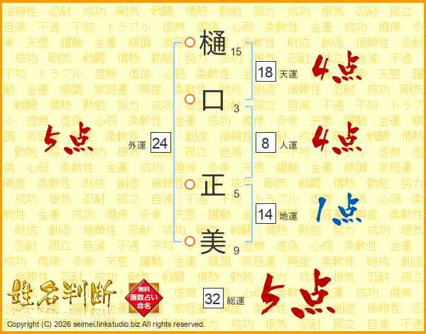 樋口正美さんの総運は32画の5点!