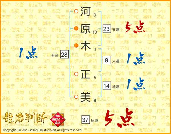 河(9画)原(10画)木(4画) 正(5画)美(9画)