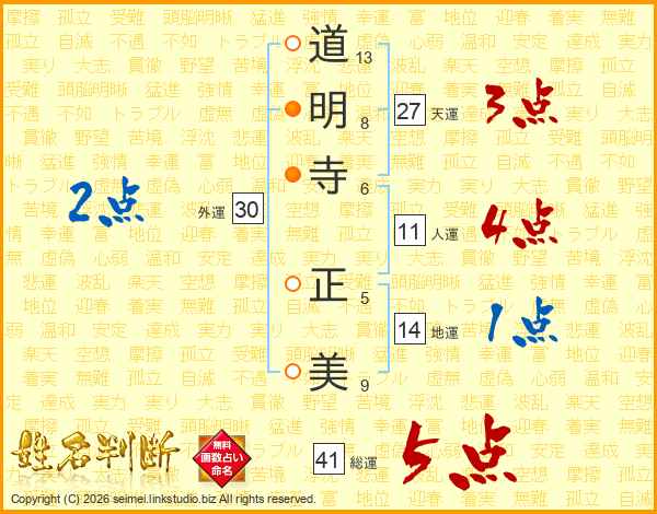 道明寺正美さんの総運は41画の5点!