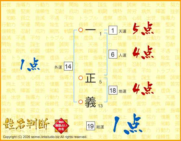 一正義さんの総運は19画の1点!