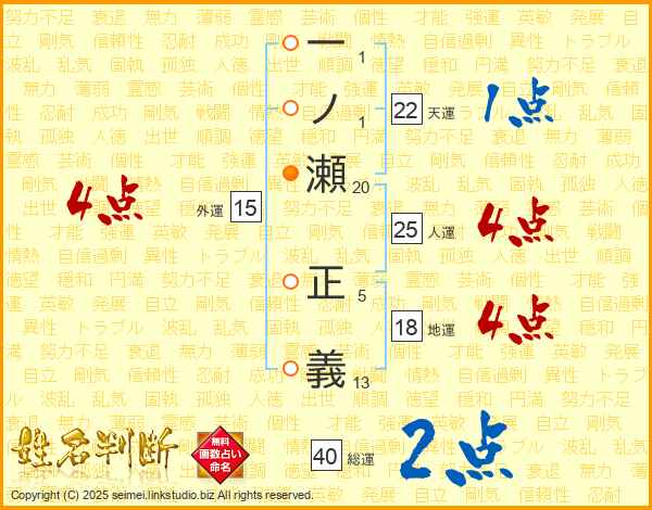 一ノ瀬正義さんの人運は25画の4点!