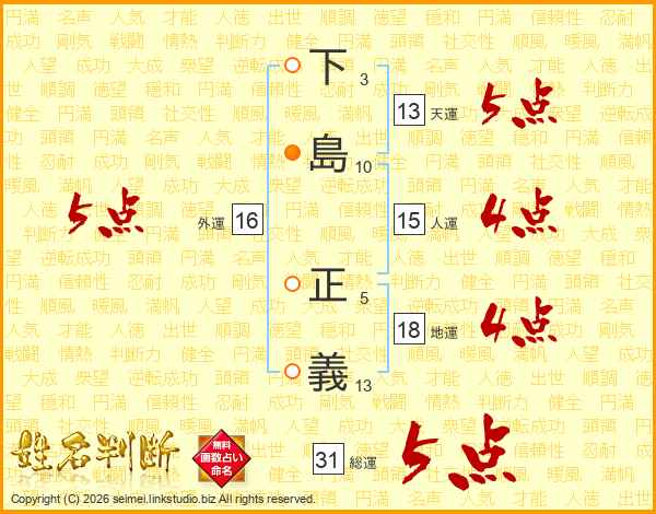 下島正義さんの総運は31画の5点!