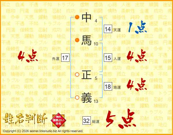 中馬正義さんの総運は32画の5点!