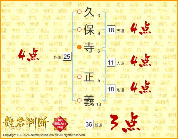 久保寺正義さんの天運は18画の4点!