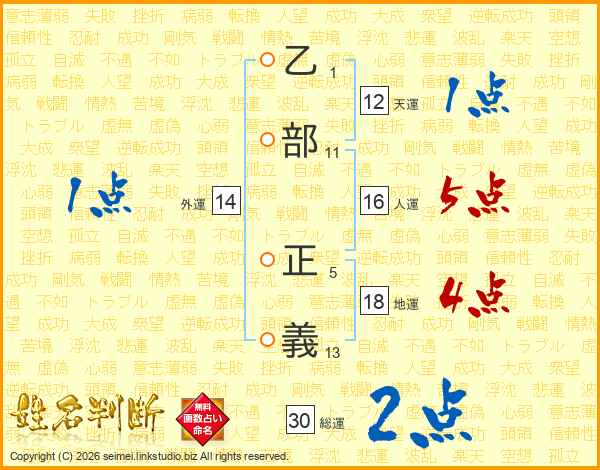 乙部正義さんの総運は30画の2点!