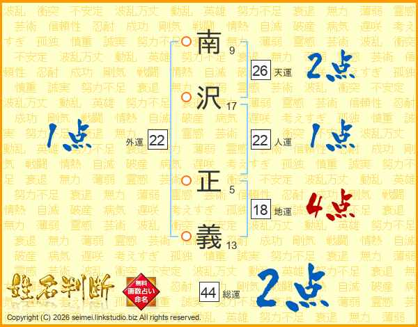 南沢正義さんの総運は44画の2点!