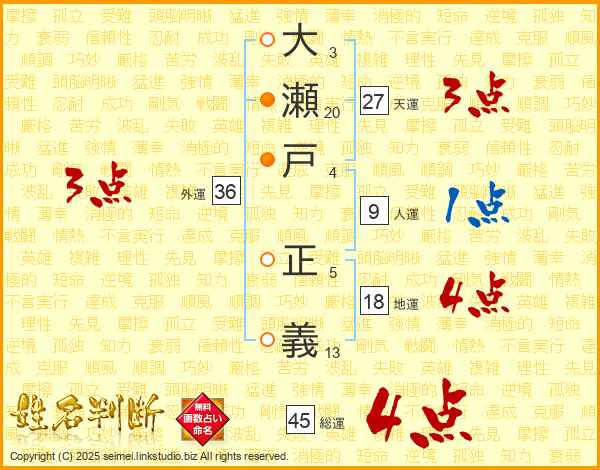 大瀬戸正義さんの総運は45画の4点!