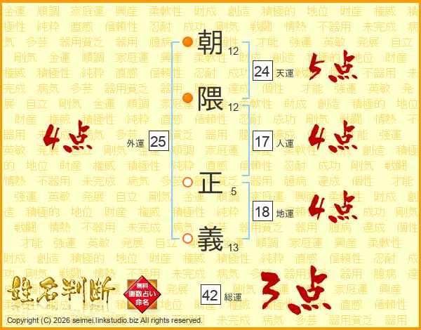 朝隈正義さんの総運は42画の3点!