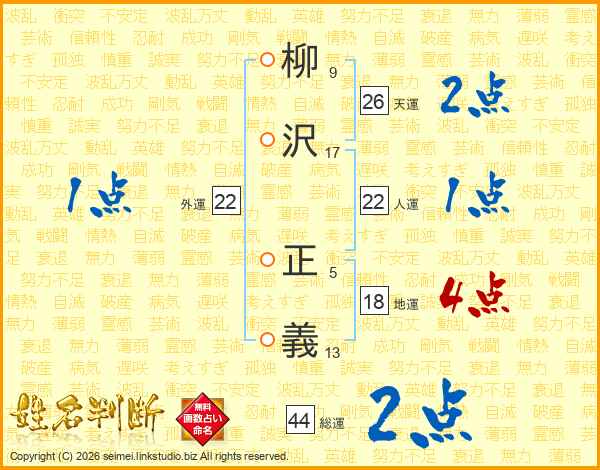 柳沢正義さんの天運は26画の2点!