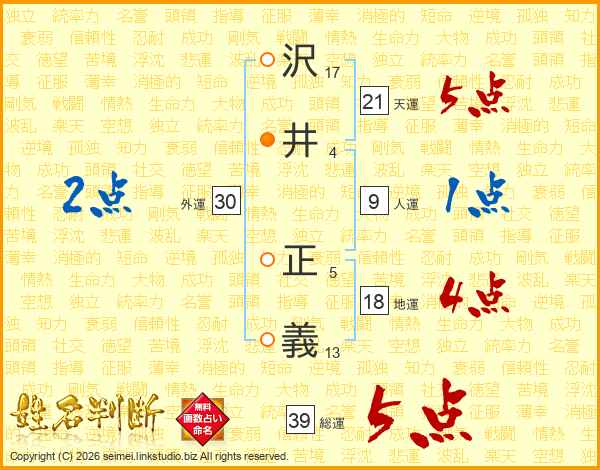 沢井正義さんの総運は39画の5点!