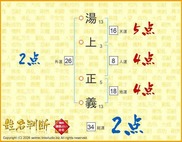 湯上正義さんの総運は34画の2点!