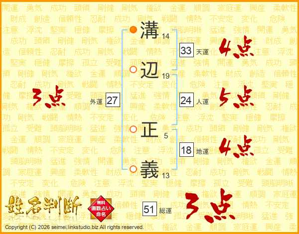 溝辺正義さんの天運は33画の4点!
