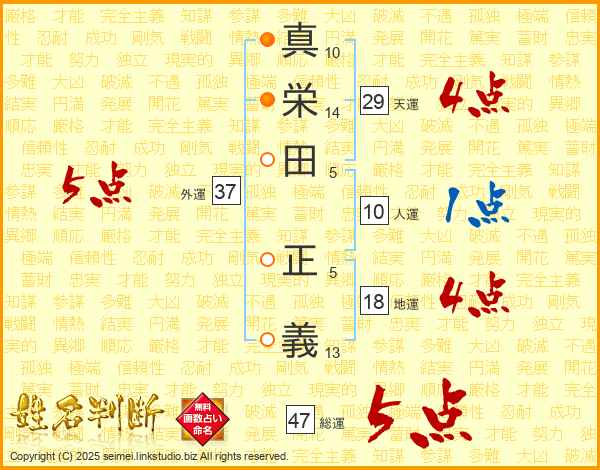 真(10画)栄(14画)田(5画) 正(5画)義(13画)