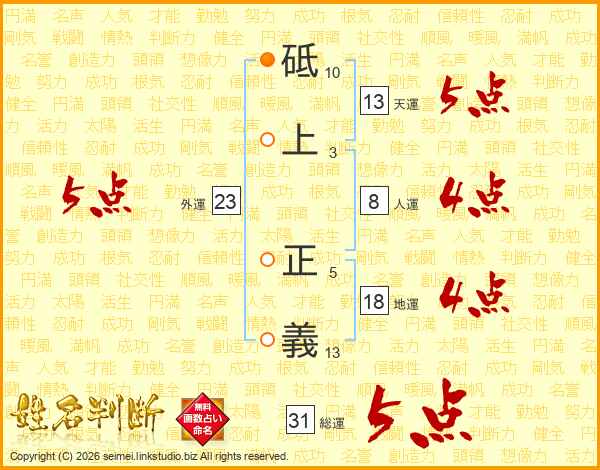 砥上正義さんの総運は31画の5点!