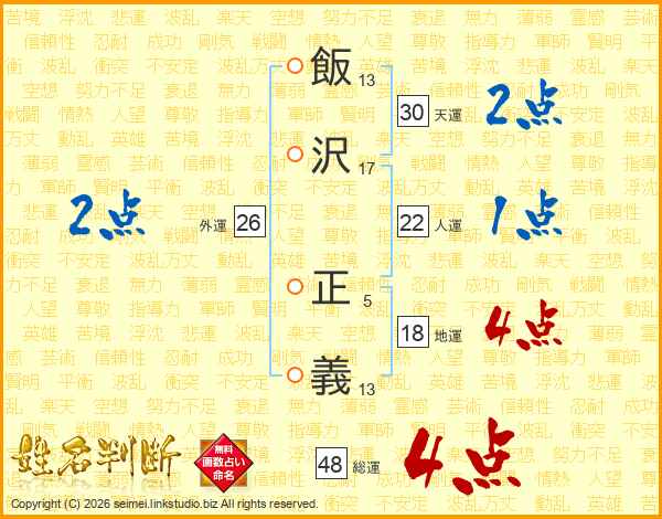 飯沢正義さんの総運は48画の4点!