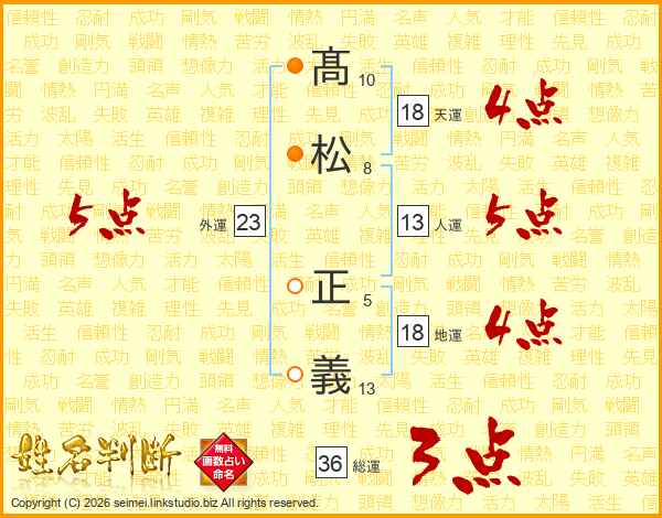 髙松正義さんの天運は18画の4点!