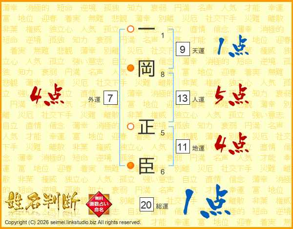 一岡正臣さんの総運は20画の1点!
