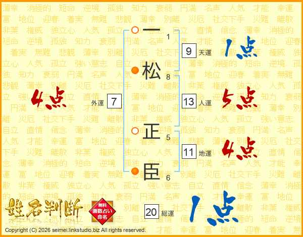一松正臣さんの総運は20画の1点!