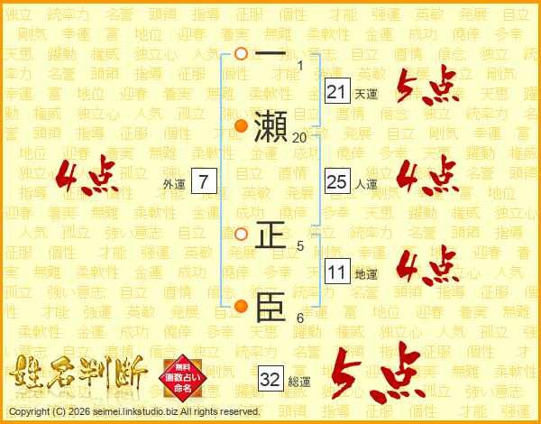一瀬正臣さんの総運は32画の5点!