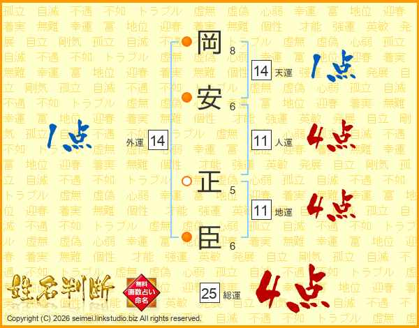 岡安正臣さんの総運は25画の4点!