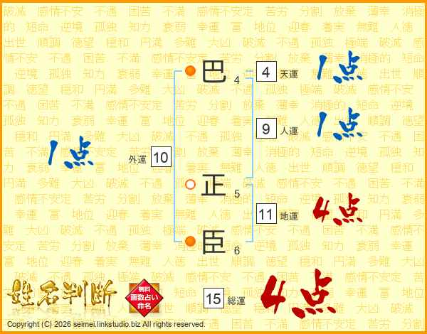 巴正臣さんの総運は15画の4点!