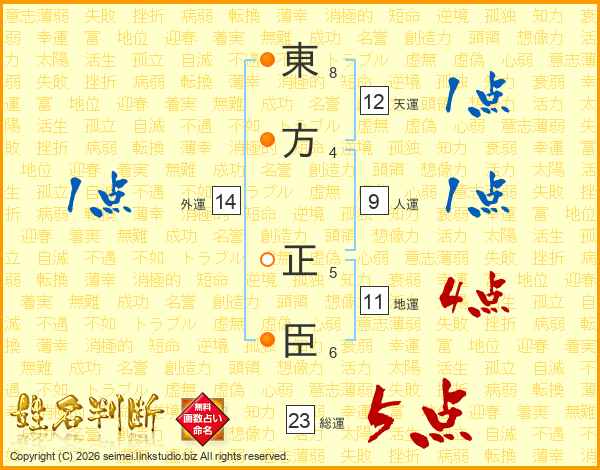 東方正臣さんの総運は23画の5点!