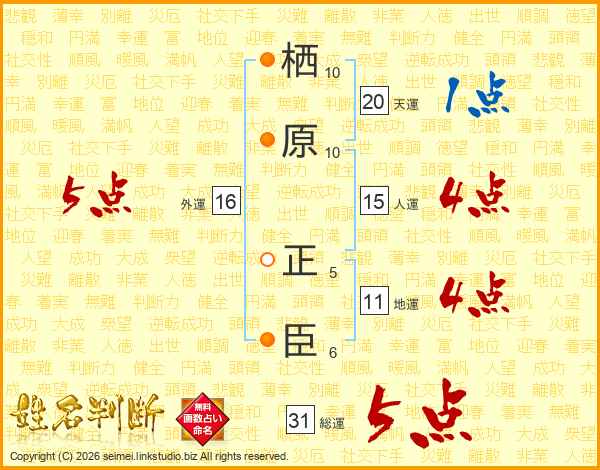 栖原正臣さんの総運は31画の5点!