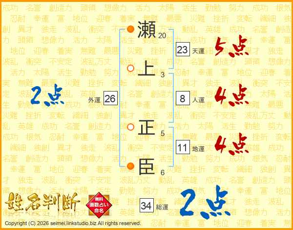 瀬上正臣さんの天運は23画の5点!