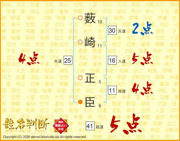 薮崎正臣さんの総運は41画の5点!