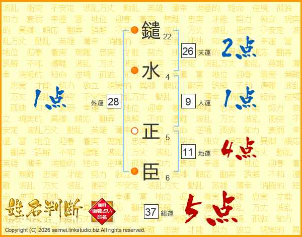 鑓水正臣さんの天運は26画の2点!