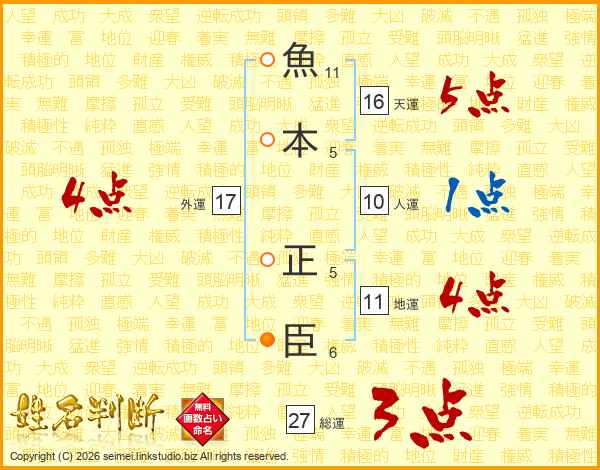魚本正臣さんの総運は27画の3点!