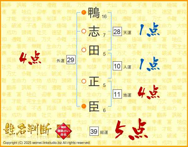 鴨志田正臣さんの総運は39画の5点!