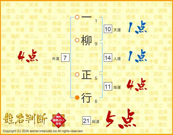 一柳正行さんの総運は21画の5点!