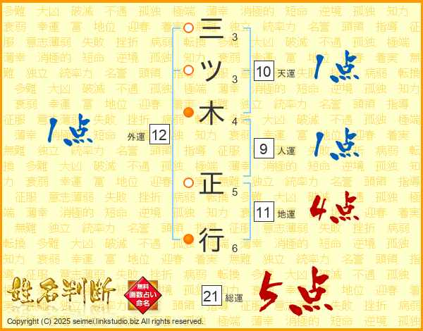 三ツ木正行さんの総運は21画の5点!