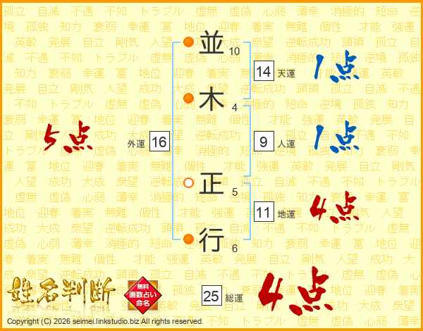 並木正行さんの地運は11画の4点!