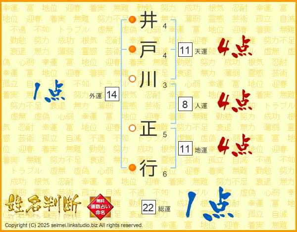 井戸川正行さんの天運は11画の4点!