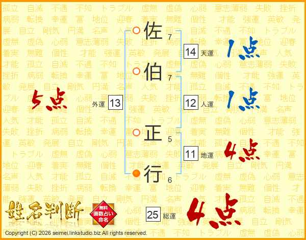 佐伯正行さんの天運は14画の1点!