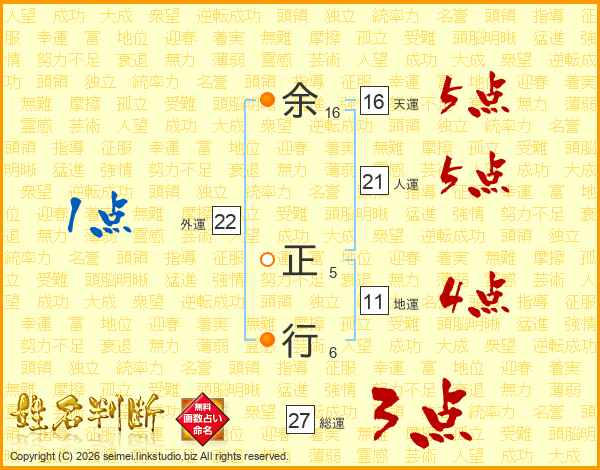 余正行さんの天運は16画の5点!