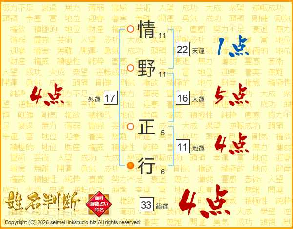 情野正行さんの総運は33画の4点!